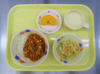 米、じゃが芋、豚肉、ツナ、調製豆乳、玉ねぎ、キャベツ、人参、トマトピューレ、コーン、にんにく、オレンジ