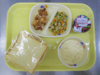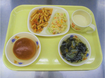 ミルクパン、マカロニ、合挽き肉(豚肉・鶏肉)、ベーコン、ツナ、調製豆乳、玉ねぎ、キャベツ、人参、ピーマン、ワカメ、コーン
